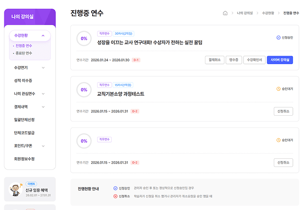 - 기프티콘 및 직무연수 할인쿠폰은 연장 기간이 없습니다.